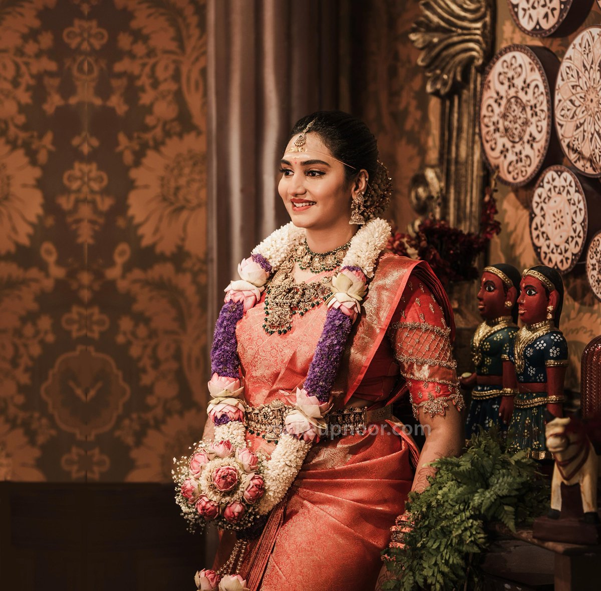 ✨ Traditional & Regal: A classic Indian bridal look using copper, bronze, and gold tones for a rich, timeless appearance. Traditional hairstyles like the Indian choti or a Devdas-inspired look add grace and elegance.